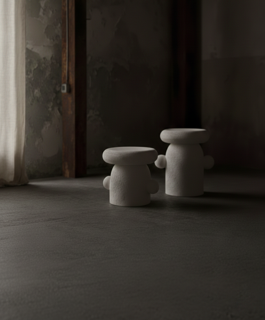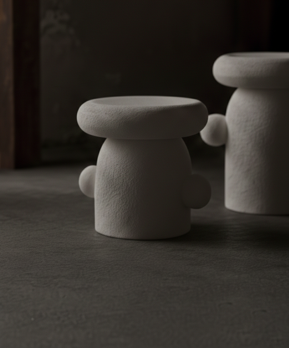 Functional and decorative stoneware stool, crafted by pinching and coiling. The ceramic surface is applied either with a brush or by pouring. Originally made for a residential project by interior designer Cristina Jorge de Carvalho and now available in an open edition.