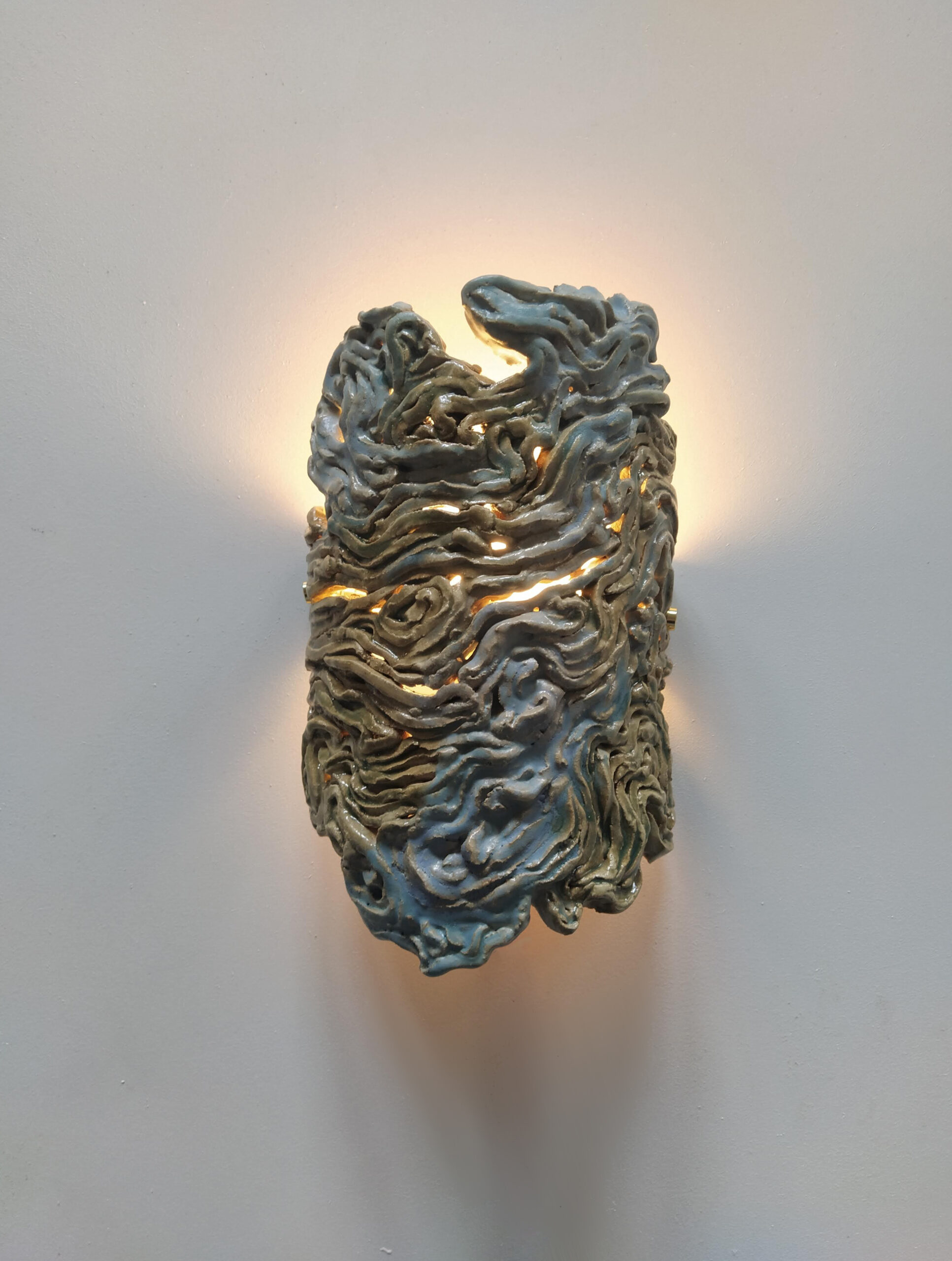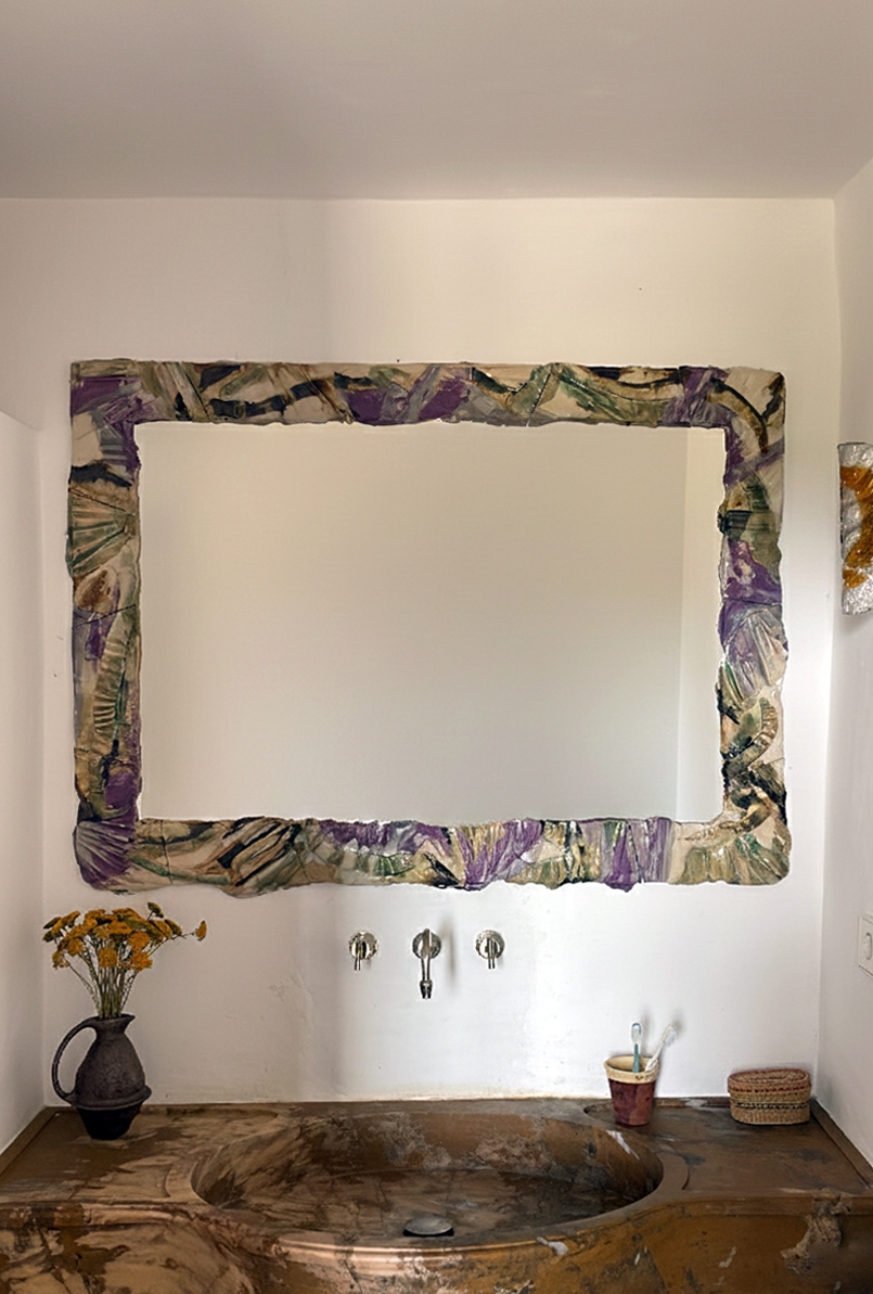 Handmade wall lamps and bathroom ceramic mirror for the house of my friend Lucie Schweitzer aka « Fantasque » in Estremoz.