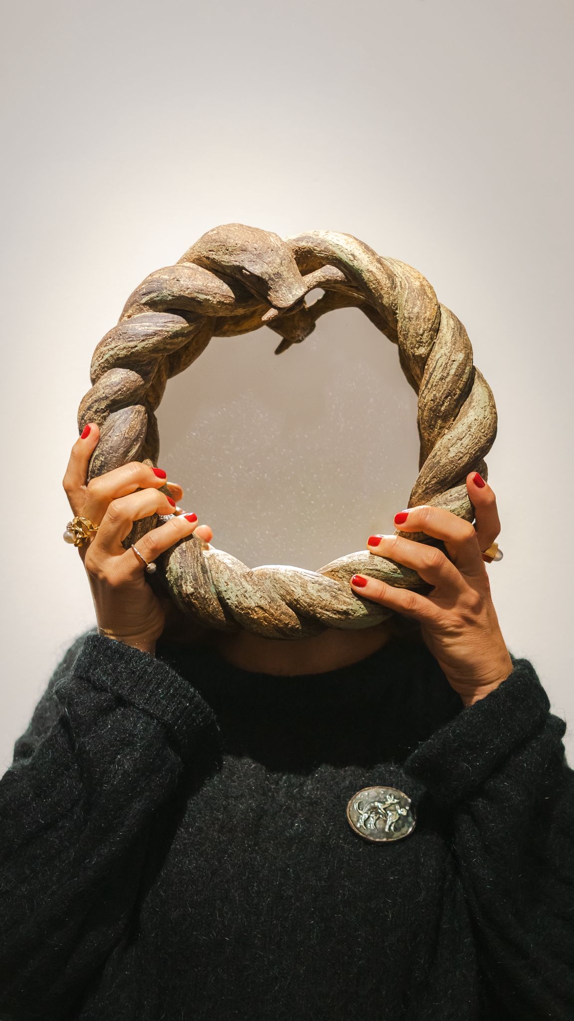 The snake that bites its tail is the Ouroboros. It symbolizes endless creation and destruction, life, death, and rebirth, appearing across diverse cultures as a primordial archetype of cosmic unity. Originally made for Felipa Almeida – « Feira dos Amores ».