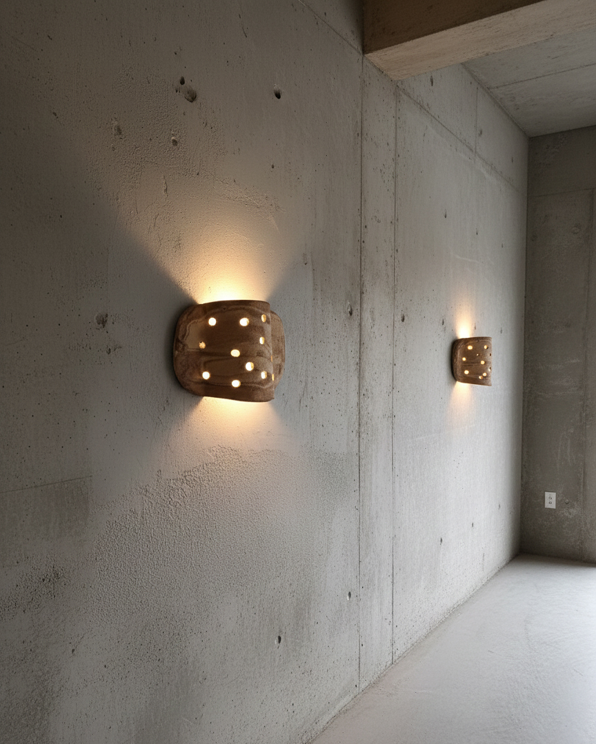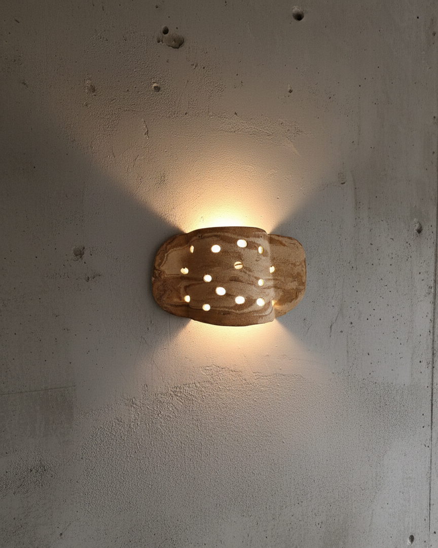 Sconce hand-built using a slab building technique in a mix of coloured clay. Originally made for Flores Textile Studio, an Interior Design Studio and now available in an open edition.